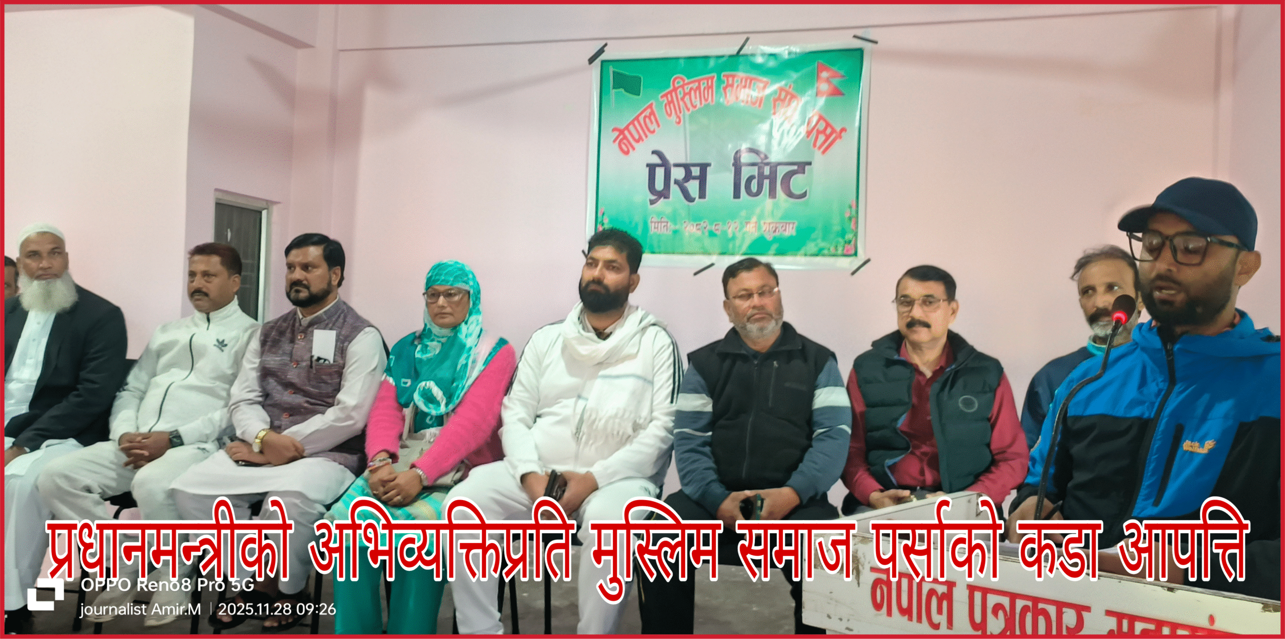 बिरगंज,१२ मंसिर। सम्माननीय प्रधानमन्त्री सुशीला कार्कीले हालै सार्वजनिक रूपमा व्यक्त गरेको अभिव्यक्तिप्रति नेपाल मुस्लिम समाज पर्साले तीव्र आपत्ति जनाएको छ। संघका अध्यक्ष महबुब अली उर्फ […]